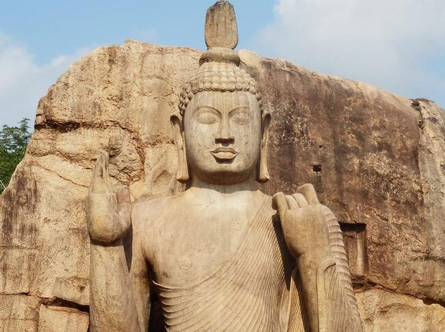 Avukana is the tallest ancient Buddha statue in Sri Lanka which is situated in a village named Avukana, close to the Kala Wewa reservoir in Anuradhapura District. According to legend, this magnificent standing Aukana Buddha was sculpted during the reign of Dhatusena in the 5th century, though some sources date it to the 12th or 13th century. Aukana means ‘sun-eating’, and dawn – when the first of the sun’s rays light up the huge statue’s finely carved features – is the best time to see it.